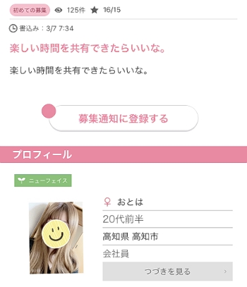 上記の画像のようにエロすぎず、「楽しい時間を共有したい」みたいな投稿は、女性は素人の割り切りが多いです。