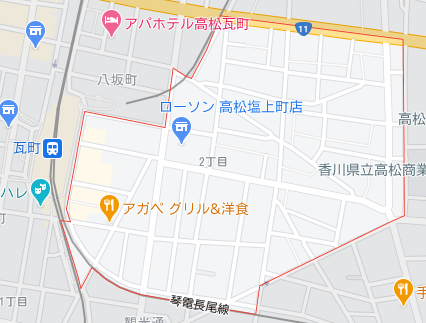 特に瓦町エリアに集中してたってのが定説です。瓦町はことでん瓦町駅周辺の繁華街で、JR高松駅から少し離れた場所。