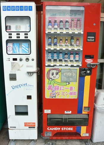 良くあるソフトドリンクメーカーの自販機の隣には、なぜか栄養ドリンクの自販機と共に、コンドームの自販機が仲良く並んで置かれているのです。